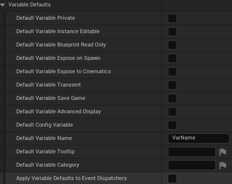 Set the default properties when creating a new Variable, Function or Custom Event